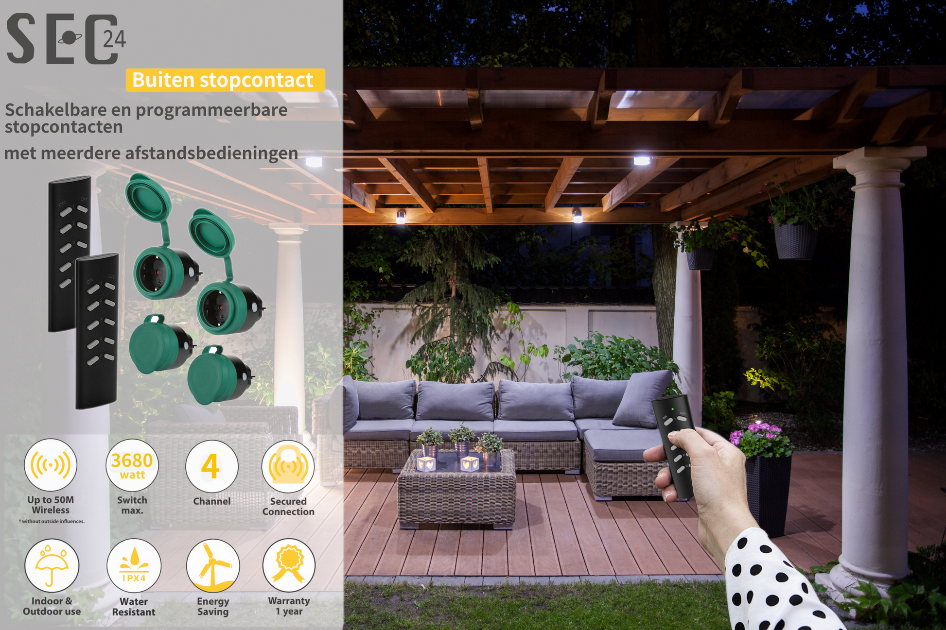 * SEC24 HAF780S - 2 pluggen voor buiten gebruik met 1 afstandsbediening.