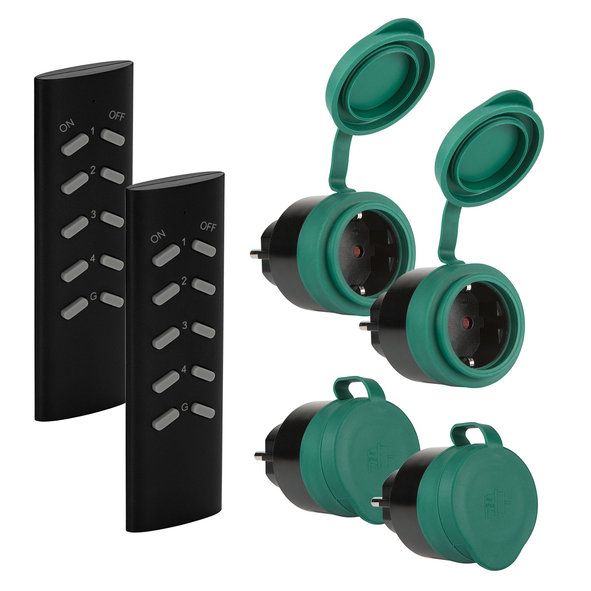 SEC24 Schakelaarset met afstandsbedieningen groen 6-delig met randaarde - Voor buiten - 3680W (HAF780S2)