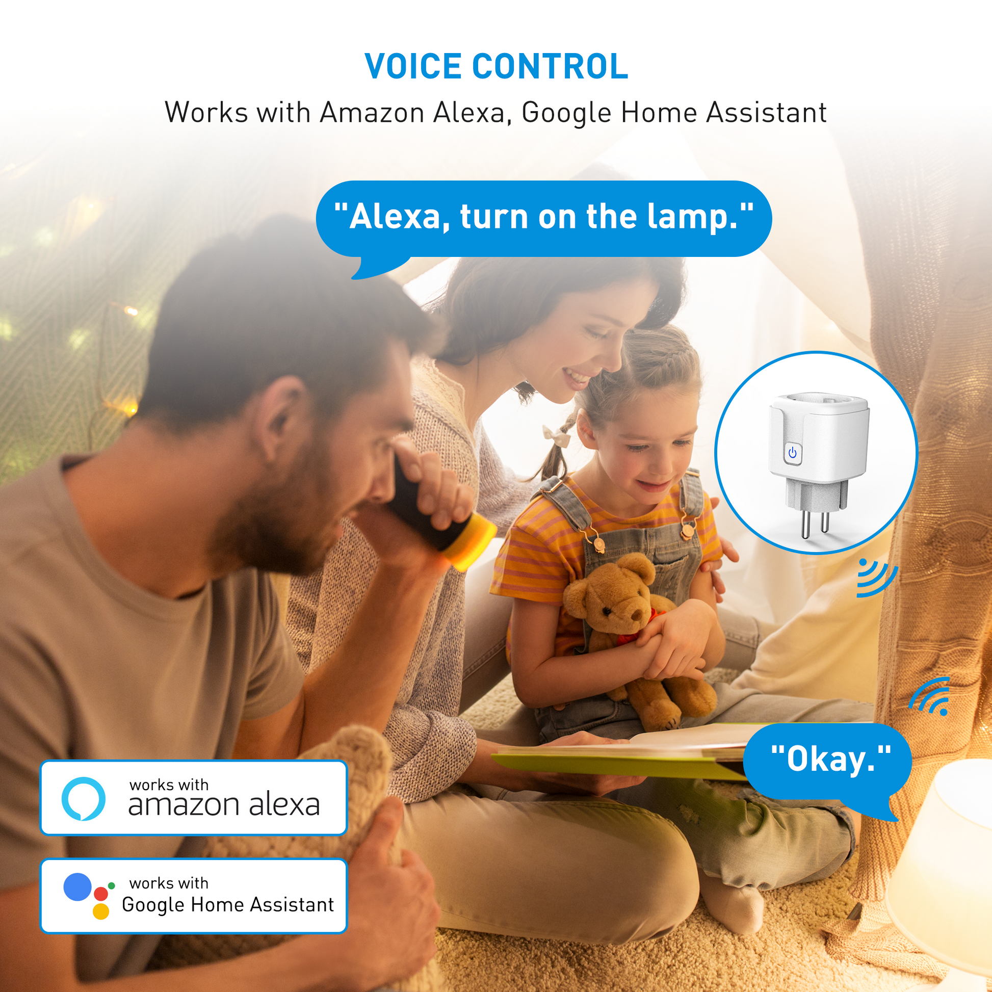 Het is ook mogelijk om deze plug aan en uit te laten gaan met uw Google Home of Alexa. Koppel eenvoudig onze Smart Life app in uw systeem, en u kunt de plug ook met praten bedienen.