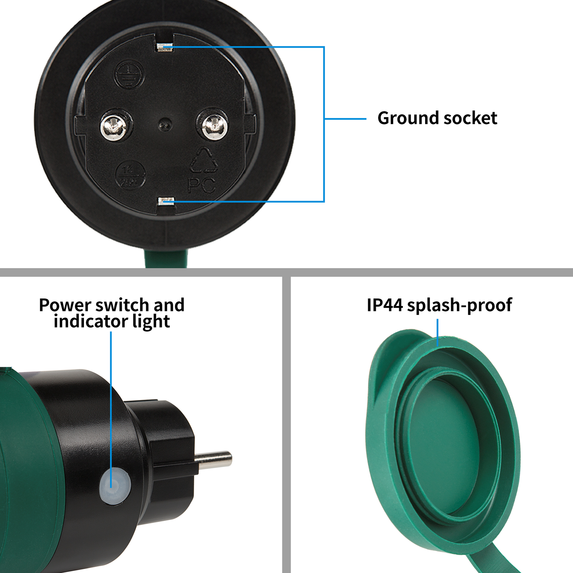 Dit product is geschikt voor zowel binnen als buitenshuis. U kunt maximaal 3680 watt schakelen met dit product.
