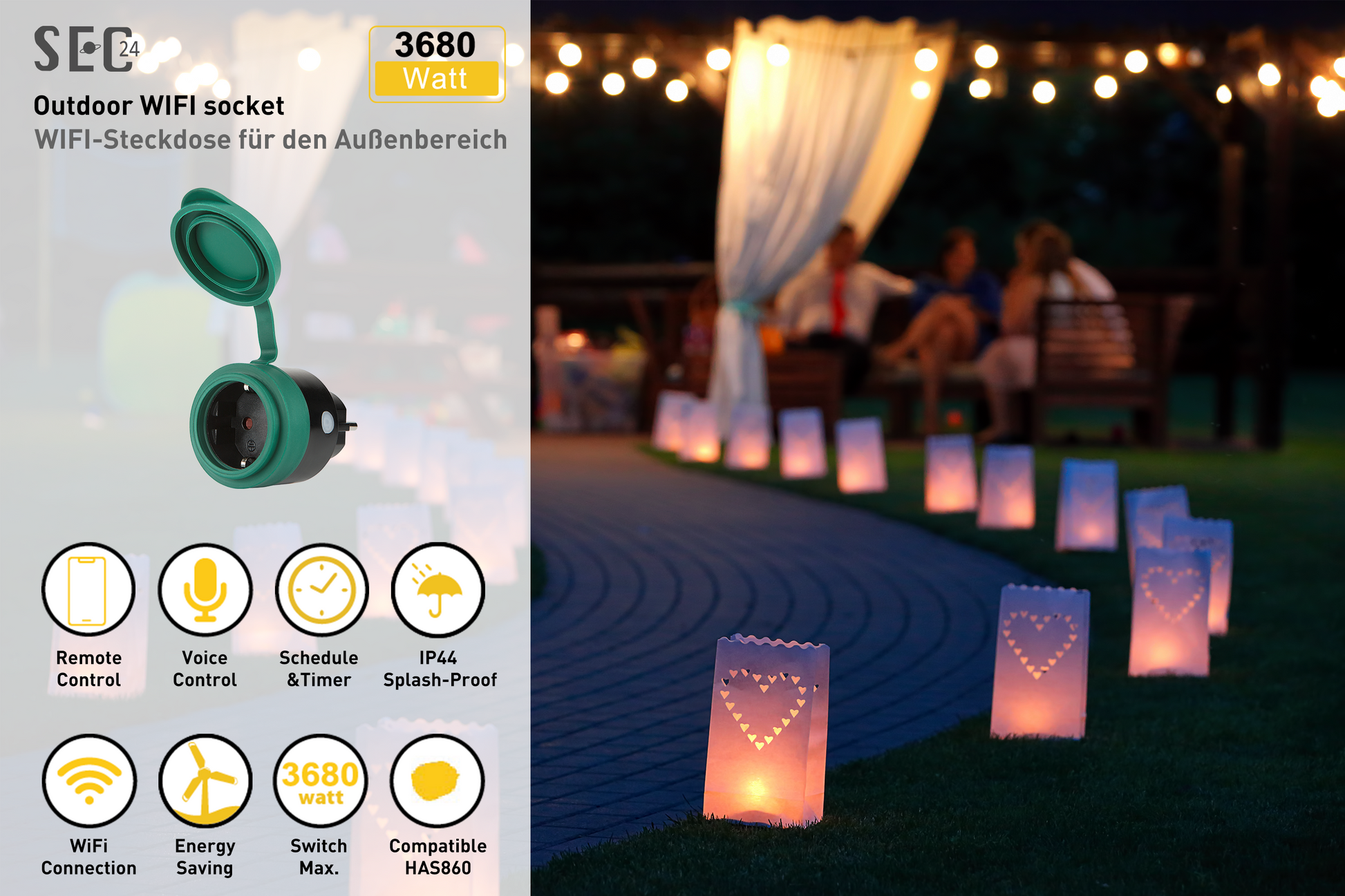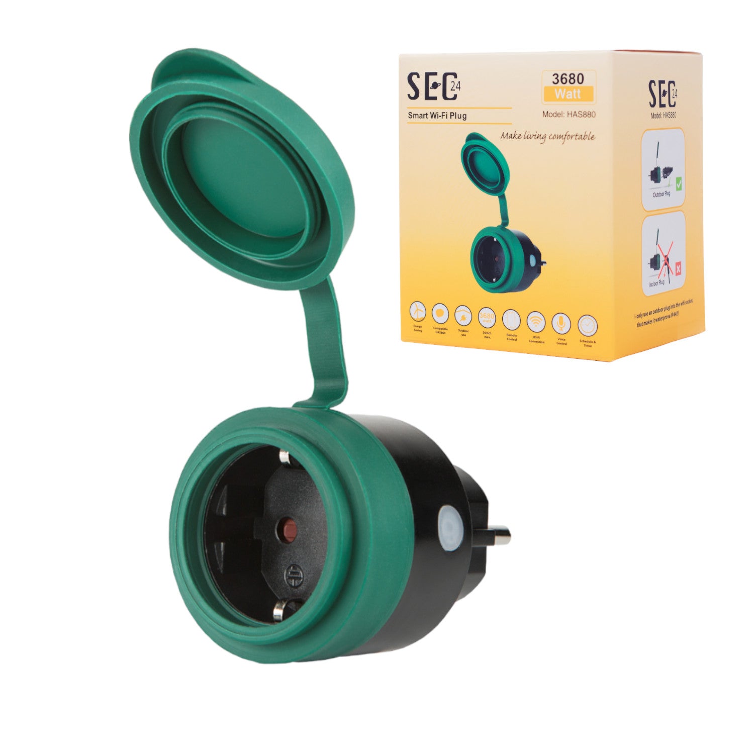 SEC24 Slimme stekker WiFi plug met digitale timer 16A- Tijdschakelaar - Energie besparing - Werkt met Google Home en Alexa - Voor buiten gebruik (HAS880)