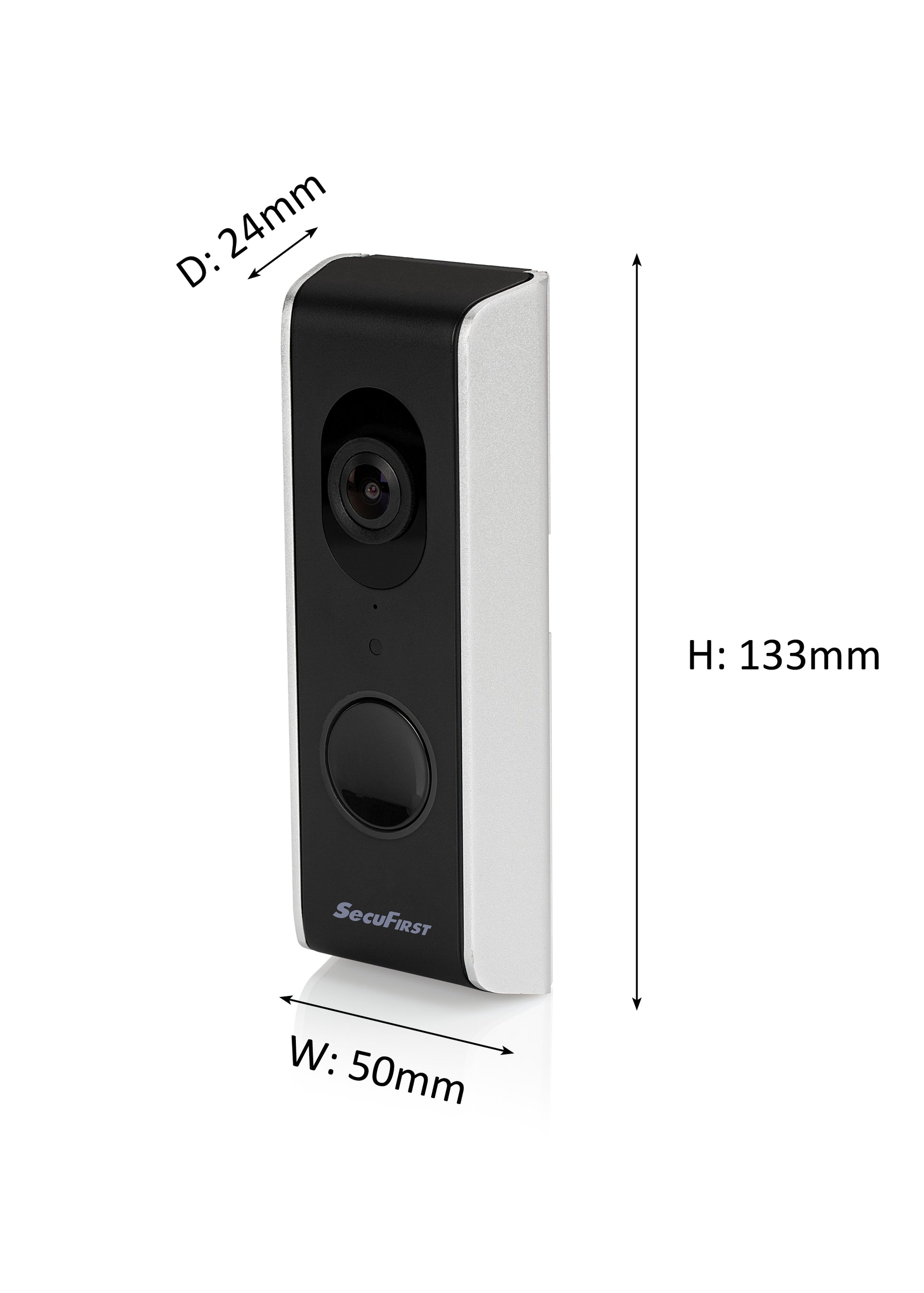 Met de SecuFirst wifi deurbel met camera DID701B, mist u nooit meer een bezoeker. Of u nu thuis bent of buiten de deur, u ontvangt altijd een oproep op uw telefoon of tablet wanneer er iemand aanbelt. Als u de oproep opneemt, dan kunt u via de SecuFirst HD app de bezoeker direct zien en met hem communiceren, overal ter wereld. Door de extra grote kijkhoek van 140° zal uw bezoeker altijd in beeld zijn. In de doos zit een montage beugel waardoor de camera 15° draait naar de deur. De beelden van de bezoekers worden automatisch opgenomen op een meegeleverde micro SD kaart van 32GB. Deze kaart is geschikt om 2600 bewegingen op te nemen. Als de kaart vol is, zal deze automatisch overschrijven. Indien gewenst, kunt u de micro SD kaart vervangen tot  maximaal 128GB. De opgenomen beelden zijn gemakkelijk terug te kijken of te downloaden via onze SecuFirst HD app. Daarnaast neemt dit product beelden op van bewegingen.  In de verpakking is een draadloze binnen gong meegeleverd welke op 3x AA batterijen werkt (niet meegeleverd). Naast dat u een oproep krijgt op uw smartphone of tablet, gaat de gong in uw huis af.